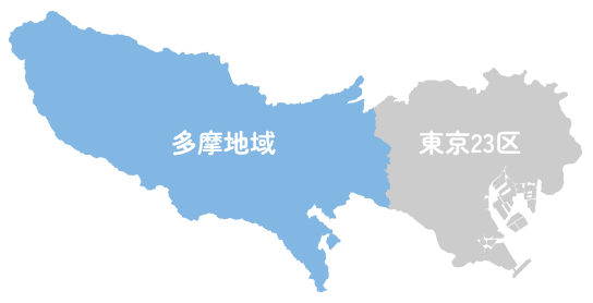 多摩地域は、東京都のうち、東京23区(旧東京市)と島しょ部(伊豆諸島・小笠原諸島)を除いた30の市町村(26市・3町・1村)で構成され、その面積は約1,159㎢。東京都(約2,193㎢)の約半分に相当します。